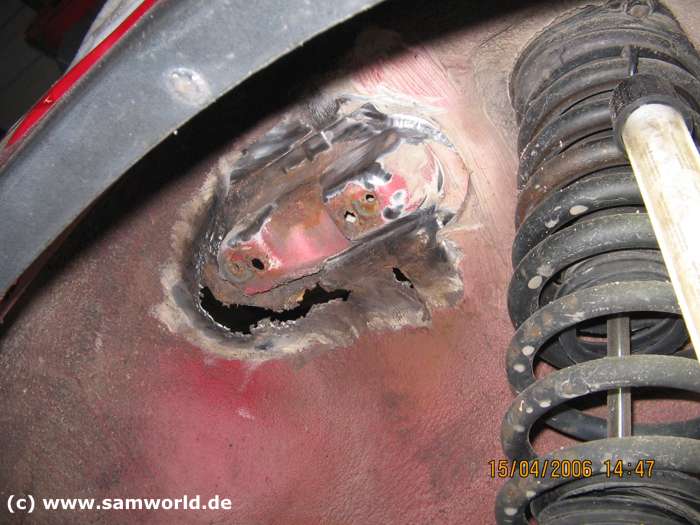 Als erstes habe ich mich um den Rostschaden hinter dem Stoßdämpfer